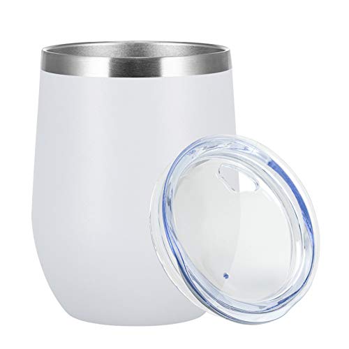 houzz Jearey Stemless Wine Glass Tumbler 12 oz Stainless Steel Double Wall Vacuum Insulated Wine Cup with Lid Travel Friendly (1 Pack, White)